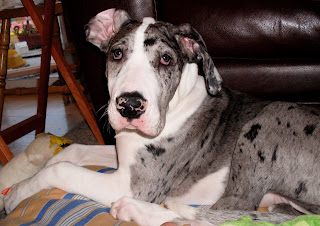 And last but not least, one of B's first photos on his new camera. This is our neighbor's puppy that we're puppy-sitting this week. She's a super sweet 3 month old, 50 lb. Great Dane. We just love her, and are glad she lives next door!